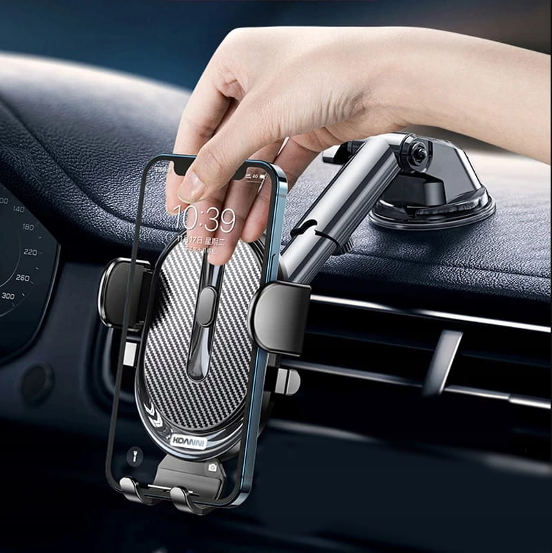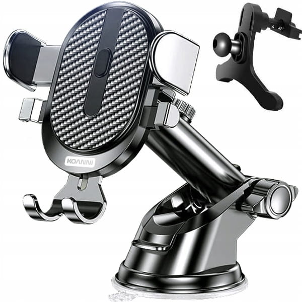 Nowoczesny i wielofunkcyjny uchwyt do samochodu na telefon, przeznaczony do montażu na szybie, kratkach wentylacyjnych lub kokpicie. Dzięki regulowanej konstrukcji, uchwyt ten zapewnia maksymalną elastyczność i komfort użytkowania, niezależnie od modelu samochodu czy wielkości telefonu.