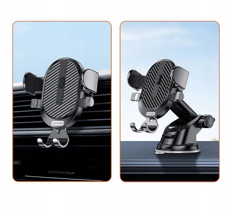 - Wielofunkcyjność: Możliwość montażu na szybie, kratkach wentylacyjnych oraz kokpicie, dzięki czemu uchwyt pasuje do różnych typów wnętrz samochodów.