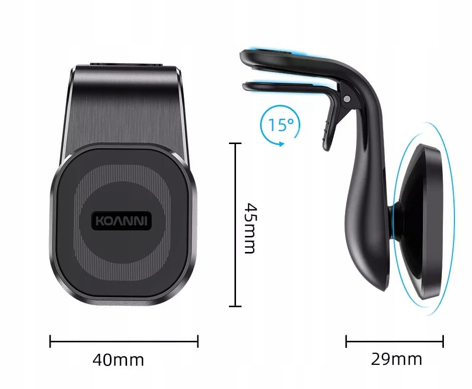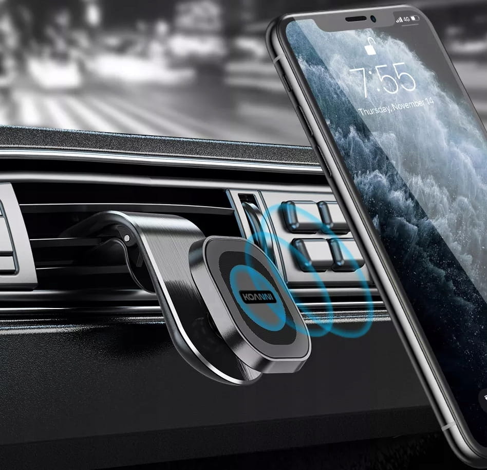 Stabilny i funkcjonalny uchwyt magnetyczny pozwala pewnie zamocować telefon, tablet lub nawigację w samochodzie. Wyposażony w 5 mocnych magnesów neodymowych i obrót o 360° zapewnia komfortowe ustawienie urządzenia pod dowolnym kątem — zarówno w pionie, jak i w poziomie.