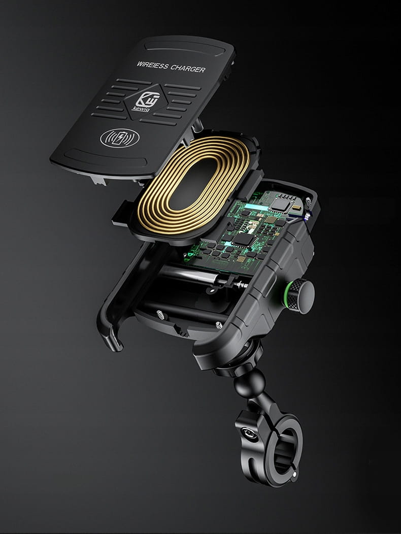 Uchwyt motocyklowy na telefon z ładowarką QI 12/24V to idealne rozwiązanie dla motocyklistów, którzy chcą mieć swój telefon zawsze pod ręką i naładowany nawet podczas jazdy. Ten uchwyt jest zaprojektowany tak, aby zapewnić bezpieczne i wygodne mocowanie telefonu na kierownicy motocykla, jednocześnie umożliwiając bezprzewodowe ładowanie.