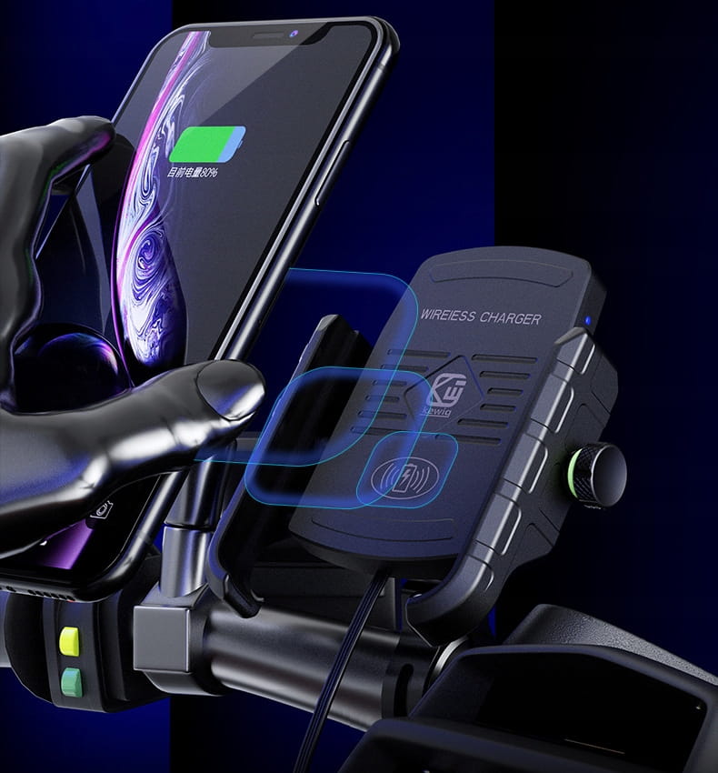 MOCNY MOTOCYKLOWY UCHWYT DO TELEFONU Z ŁADOWARKĄ BEZPRZEWODOWĄ