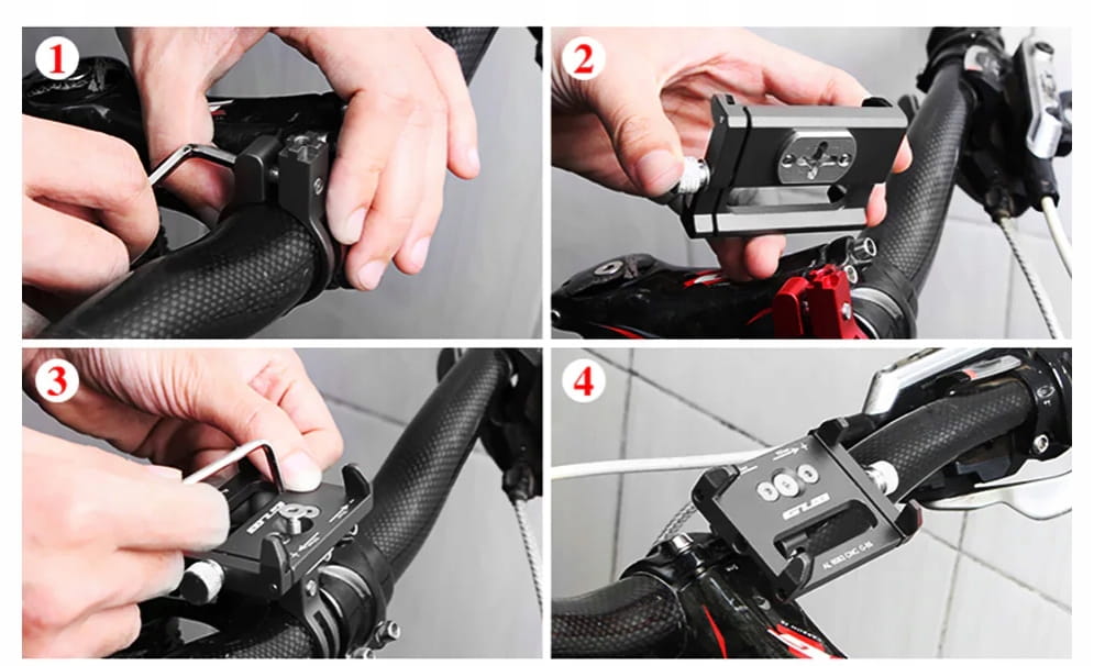 Gumowy uchwyt do telefonu lub nawigacji rowerowy / motocyklowy, pasuje do wszystkich modeli 4" - 6,5", łatwy w montażu, posiada regulację na pasku zaciskowym