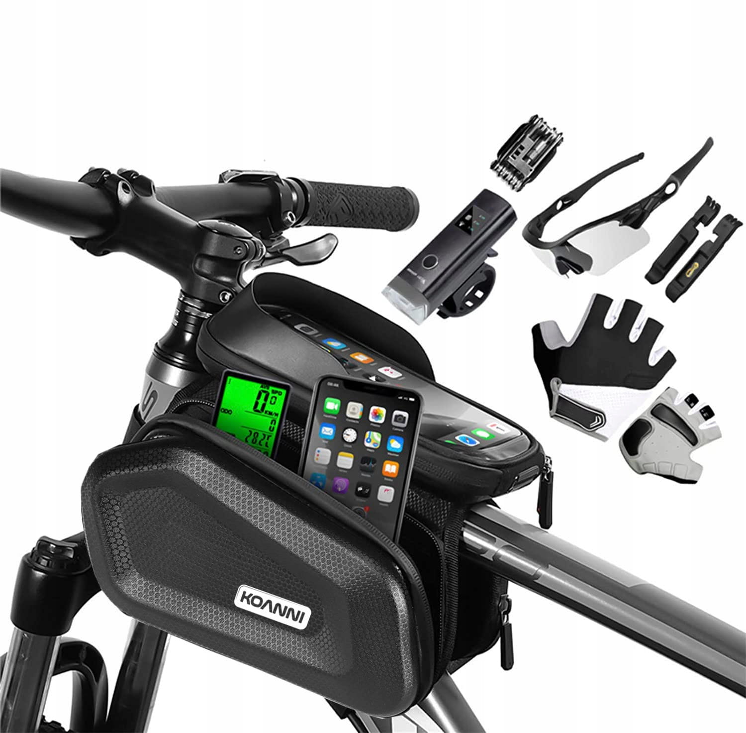 Mocowana do ramy i kierownicy za pomocą 3 pasków zapinanych na mocny rzep.