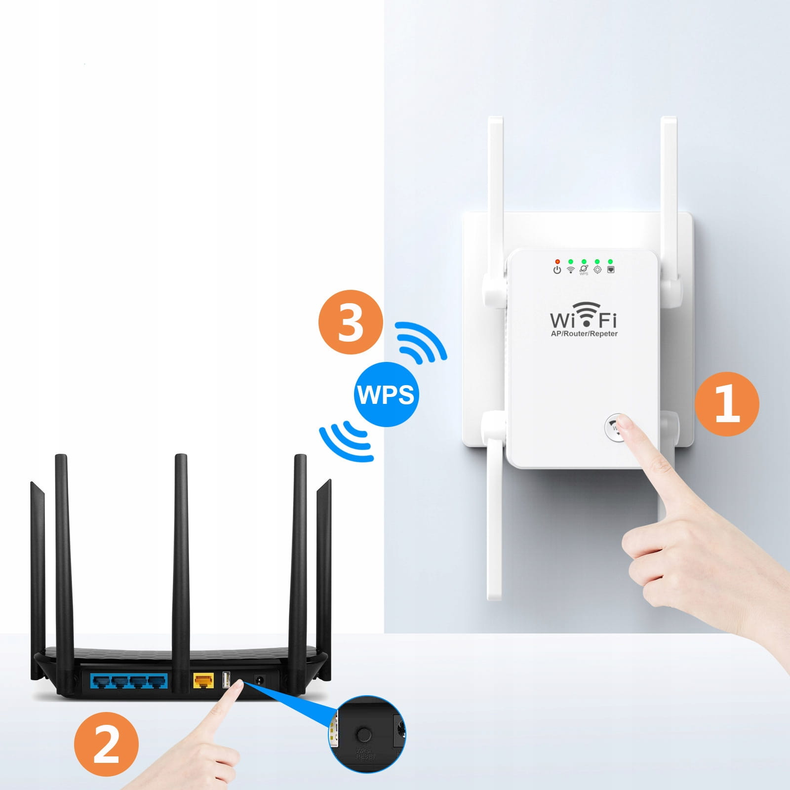ŁATWE POŁĄCZENIE - Czy połączenie routera i repeatera może się odbywać przy pomocy jednego przycisku? Tak! Dzięki WPS wystarczy że podłączysz nasz wzmacniacz do prądu i równocześnie naciśniesz przyciski WPS na jednym i drugim urządzeniu. Przytrzymaj je ok 2 sekund i gotowe!