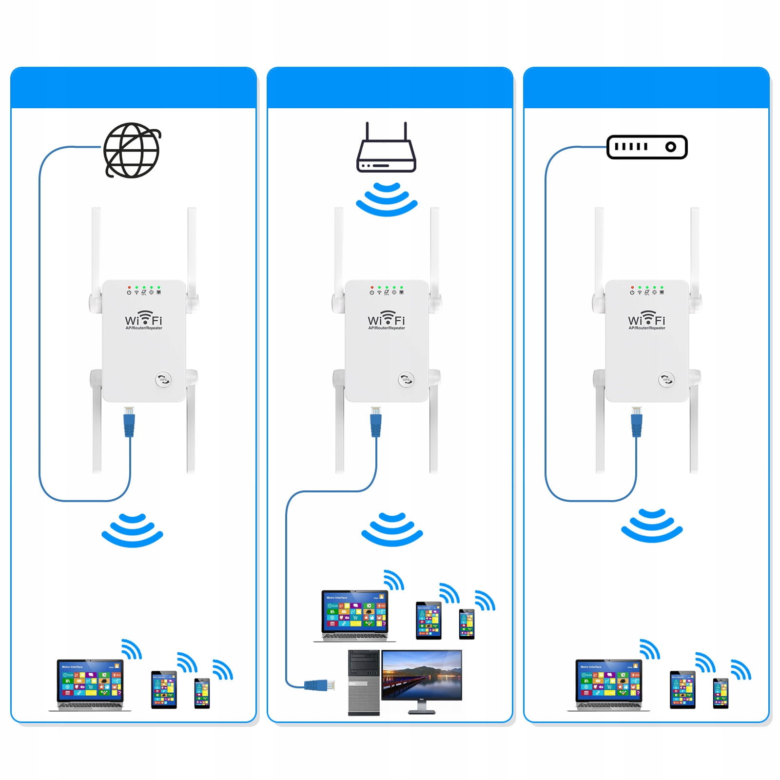 Wzmacniacz sygnału WI-FI REPEATER duża moc 300MB/S - 4 ANTENY