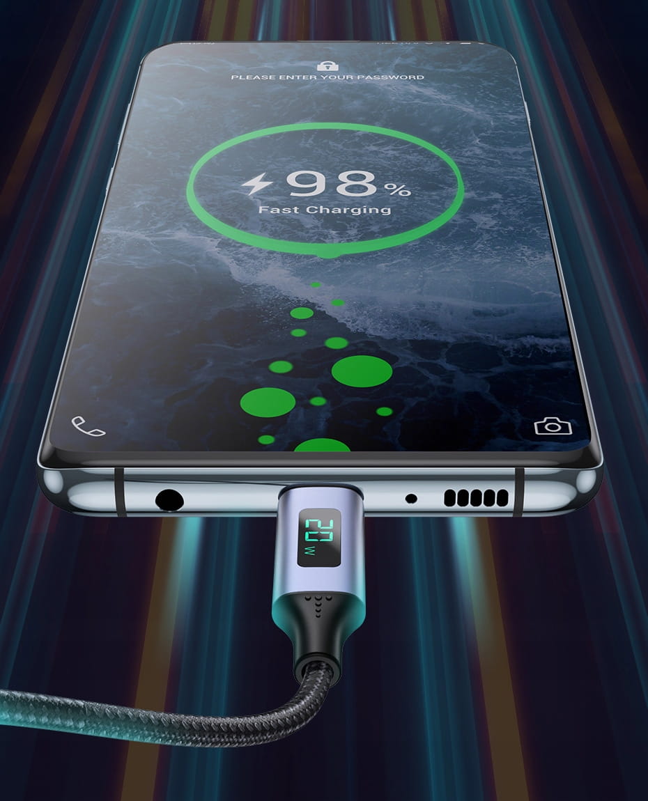 WZMACNIANY SZYBKI KABEL TYP-C MIERNIK LED 20W 3A