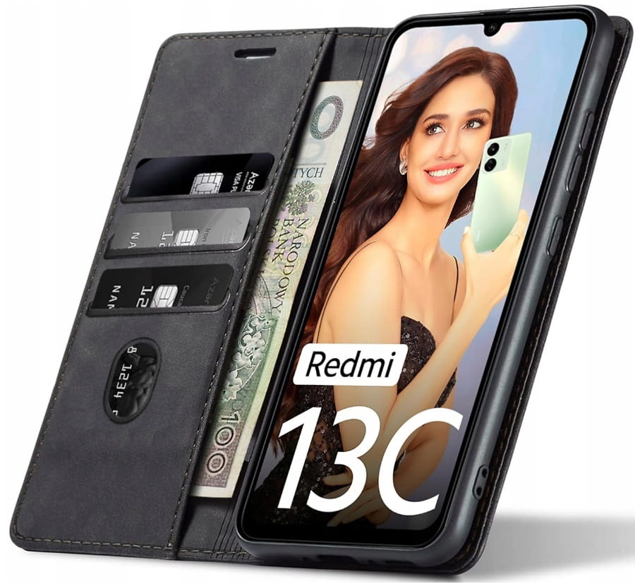 Xiaomi Redmi 13C, Etui skórzane z klapką magnetyczne 100% skóra
