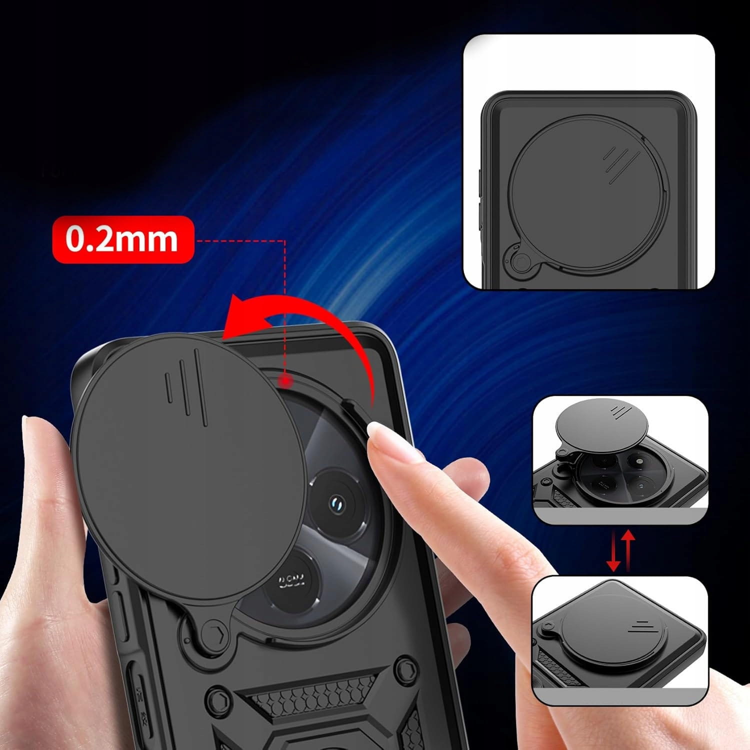 Pełna ochrona aparatu – przesuwna płytka chroni obiektywy, a odsłonisz je tylko wtedy, gdy tego potrzebujesz.