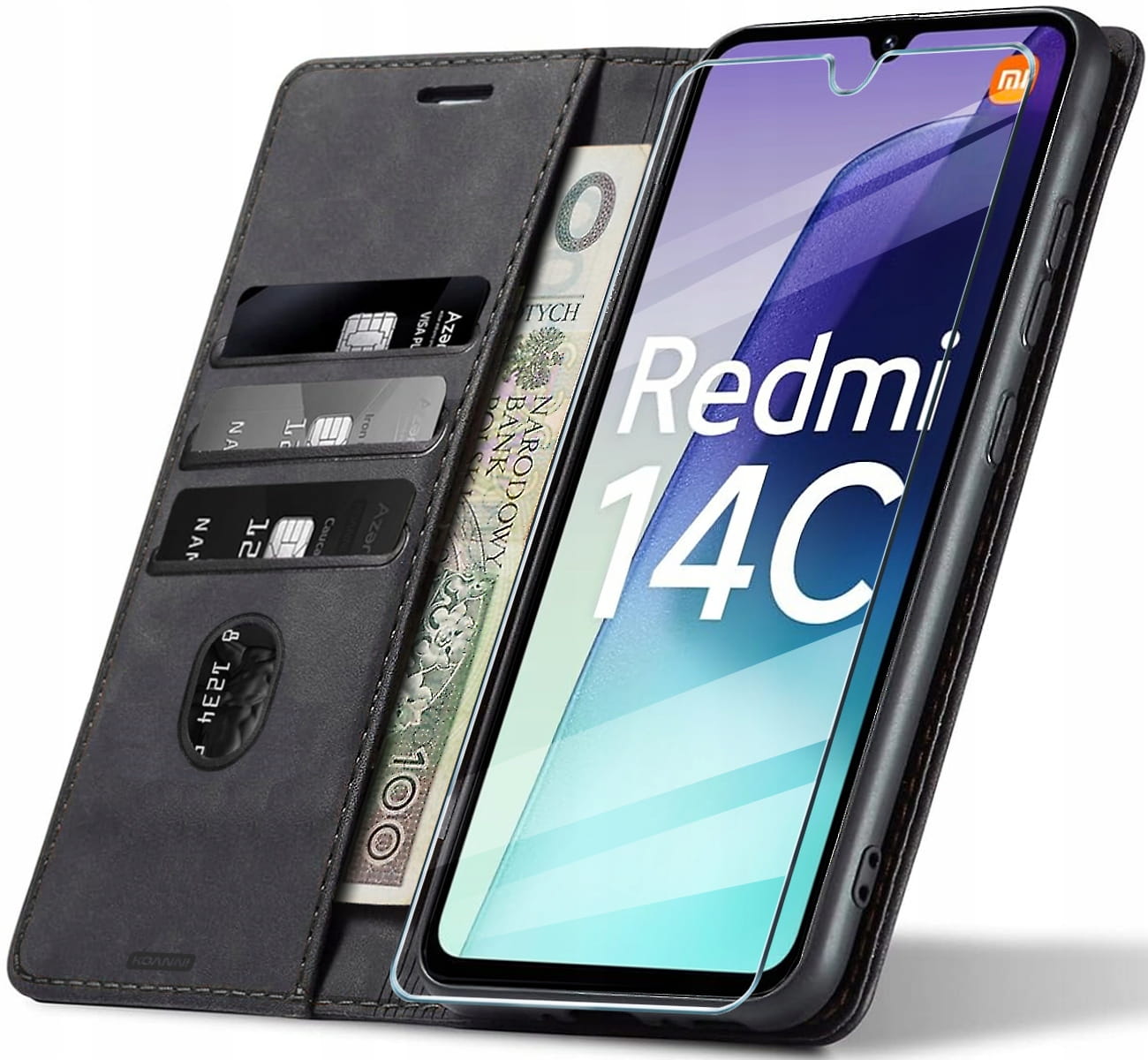 Xiaomi Redmi 14C, Etui skórzane z klapką magnetyczne 100% skóra