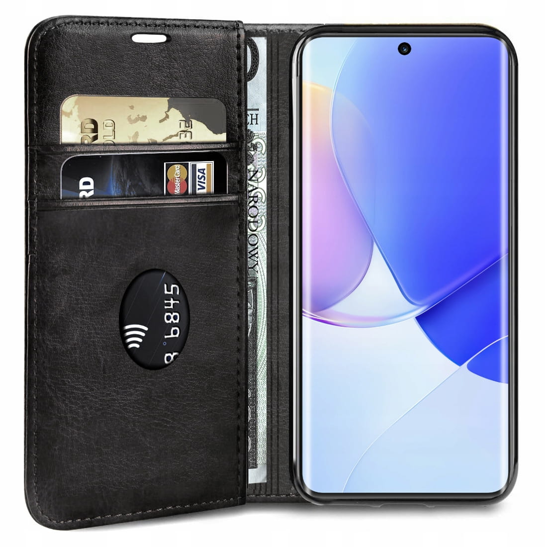 Elegancki skórzany futerał zapinany na magnes. Telefon mocowany jest do wewnętrznego szkieletu. Futerał został wykonany z dobrego jakościowo materiału. Jest starannie wykonany, a wzmocnione przeszycia gwarantują jego trwałość. W jego wnętrzu znajduje się dodatkowa kieszeń na kartę kredytową lub banknoty. Zapinanie na magnes chroni telefon przed wysunięciem, a także przed zarysowaniami i drobnymi uszkodzeniami.
