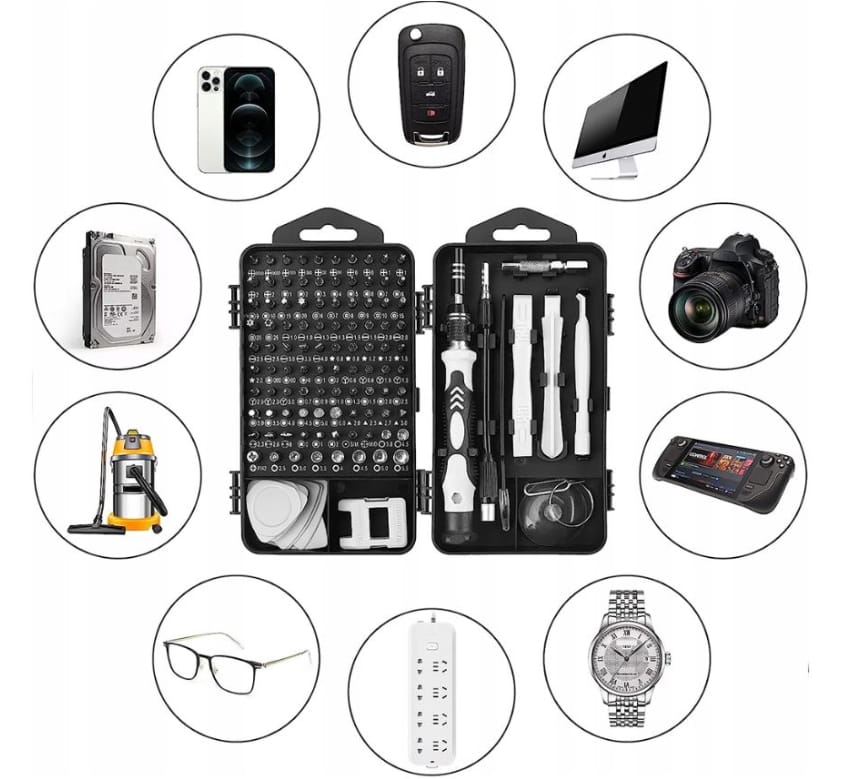 Bogactwo wyboru: Zestaw ten zawiera aż 115 różnych elementów, w tym wkrętaki, precyzyjne bity oraz końcówki. Dzięki temu masz szeroki wachlarz narzędzi do wyboru, aby sprostać różnorodnym zadaniom.